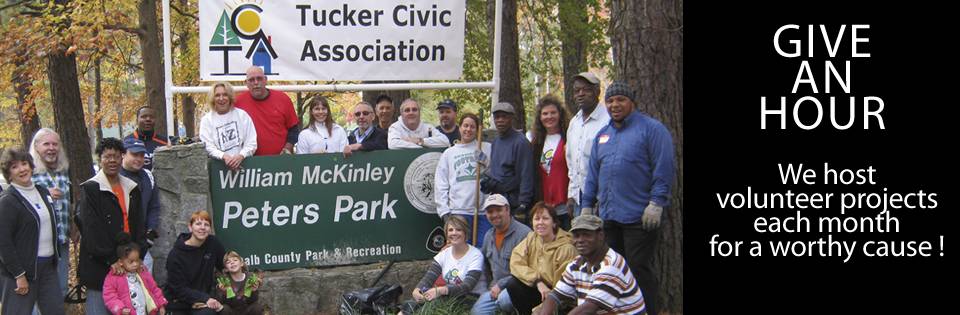 How Can I Volunteer? The Tucker Civic Association sponsors community service volunteer projects called “Give-An-Hour” multiple times during the year. The program allows community members the opportunity to be involved by giving just one hour doing such things as helping spruce up a local park, providing items to a local food bank or showing support for our local police and fire personnel.